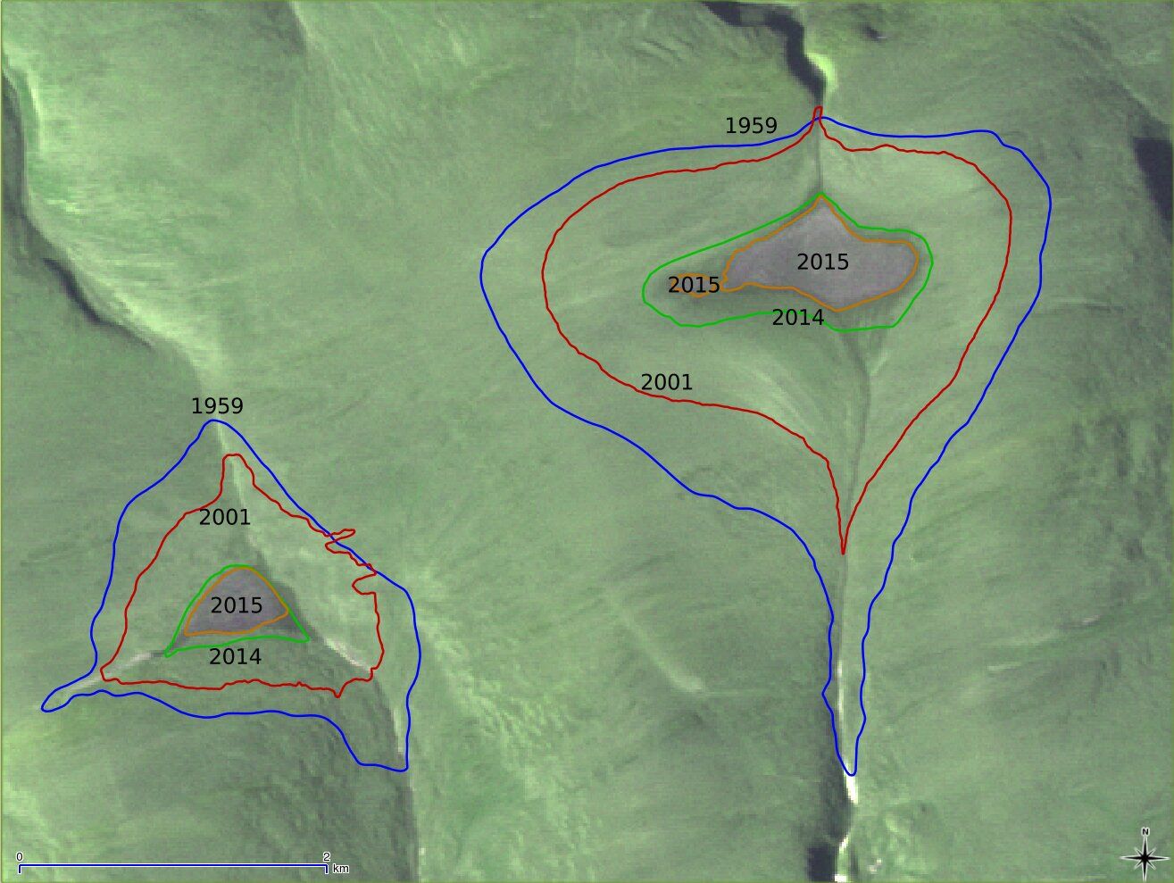 According to NASA satellite images, the St. Patrick Bay ice caps on the Hazen Plateau of Ellesmere Island in Nunavut, Canada, have disappeared in 2020 entirely. A comparative analysis of vertical aerial photographs taken in 1959 with the satellite data from 2015 found that until 2014 these ice caps had melted only by 5%. Yet, an extraordinarily hot summer of 2015 caused them to shrink significantly. The satellite images taken in July 2020 show that ice caps are now absent.