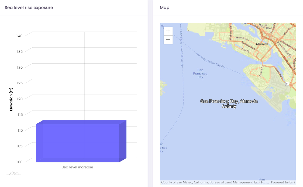 The Augurisk Coastal Flooding Hazard index is based on three components: the mean elevation of your block, the expected sea level rise in your area, and your exposure to hurricanes. You can also assess your risks from other natural hazards like storms, wildfires, and earthquakes.